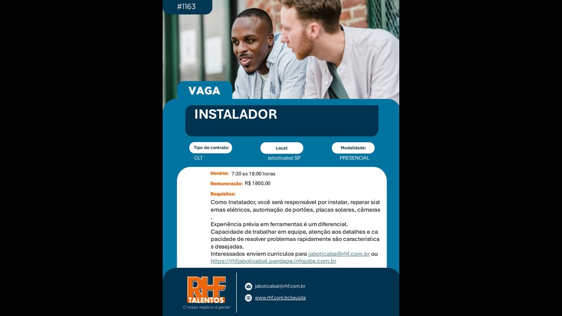Estamos em busca de um Instalador para se juntar à nossa equipe.